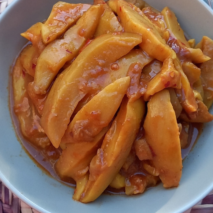 در مقایسه با ترشی انبه ی (ملس) ترش تر و تندی زیادی دارد